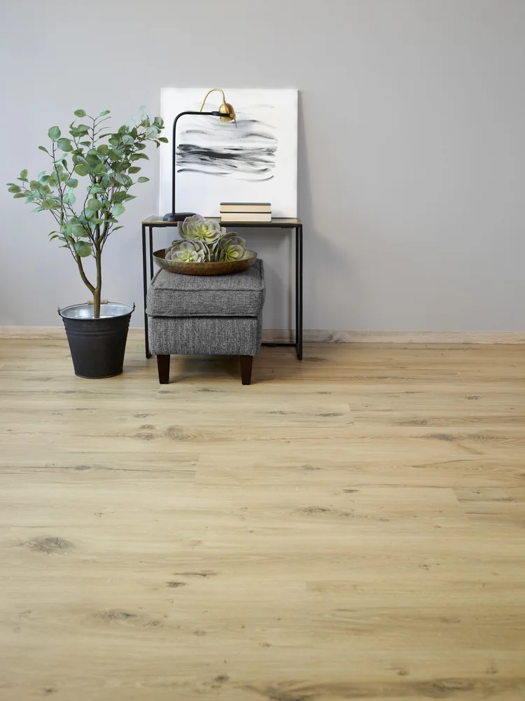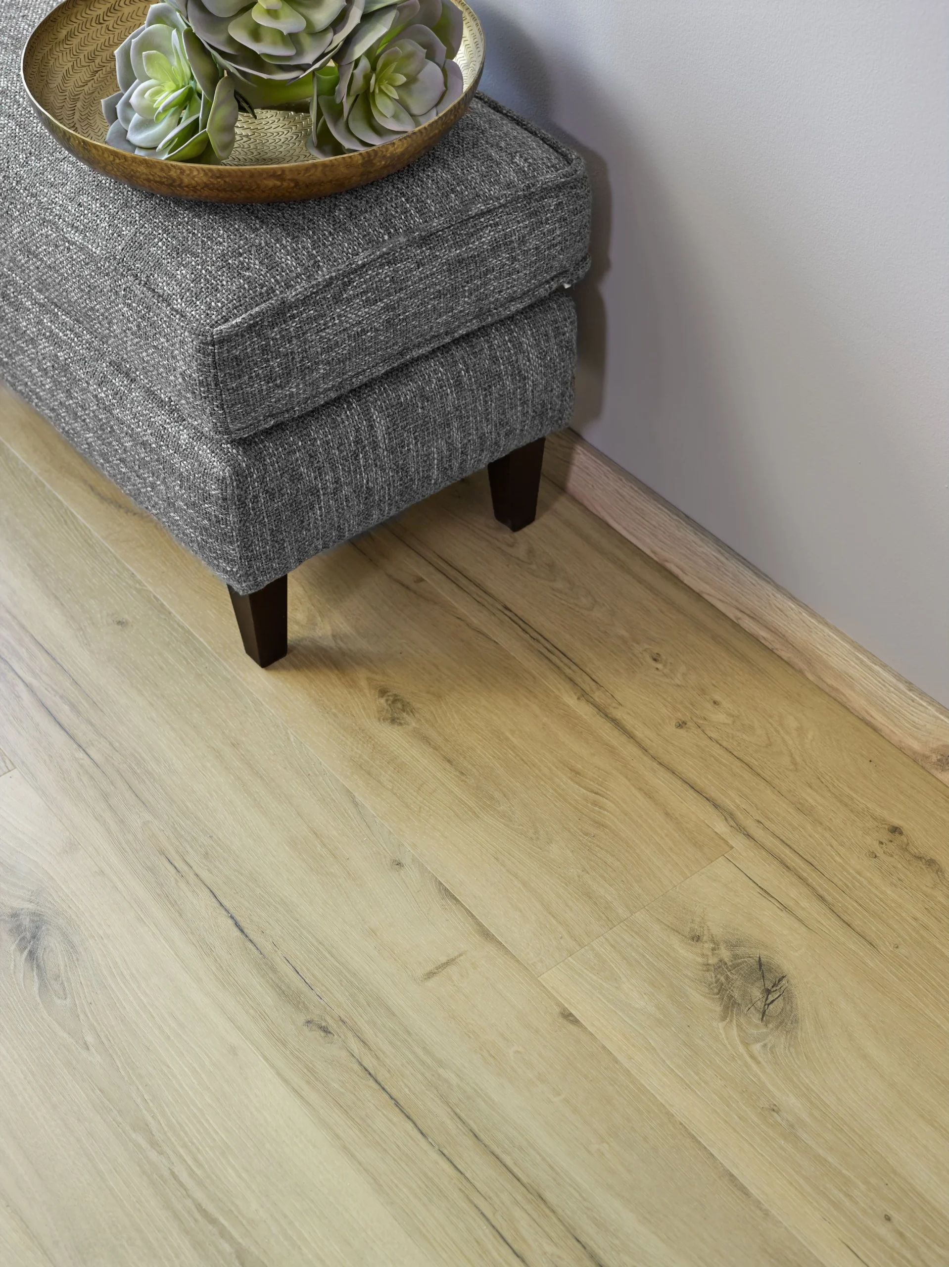 Gulvet har integrert underlag som demper lydstøy og korrigerer for mindre ujevnheter. Det er vann-/ fuktbestandig så derfor et ideelt valg også for kjøkken og gang.