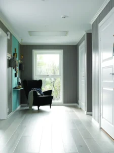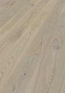 SAGA Exclusive Pearl Oak er et nydelig lyst eikegulv. Dette er en hvitpigmentert 1-stavs parkett med mattlakket og børstet overflate for et naturlig utseende. Parkettens lyse farge og lange bord glir lett sammen med de fleste stiler og vil løfte ethvert rom. Parketten er faset på 4 sider, og er overflatebehandlet med matt lakk. Dette parkettgulvet kan du fint legge med gulvvarme.