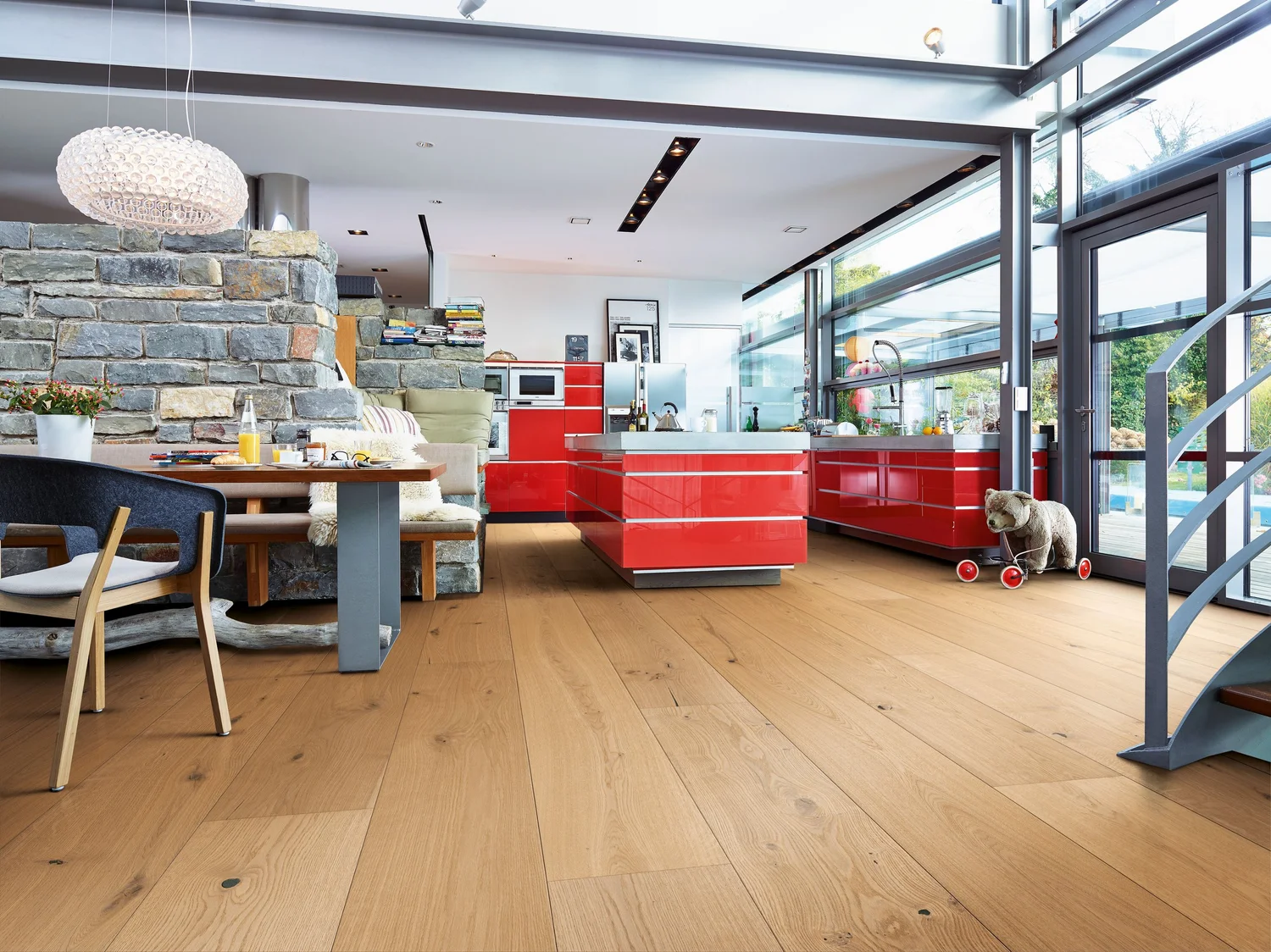 Høye heler, fotballsko og fallende gjenstander gjør vesentlig mindre inntrykk på Saga Hardwood enn tradisjonell parkett. Med et smidig og solid klikksystem er monteringen rask og enkel, hvor sluttresultatet er et imponerende og varig gulv.