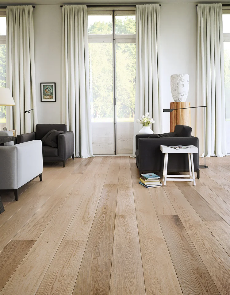 SAGA Natural Harmony White Oak har en nydelig naturlig tone og er et oljet parkettgulv med kvist, hvor løse kvister sparkles igjen før behandling for å sikre at de ikke løsner. Kvistende gjør at gulvet gir liv og blir levende.
